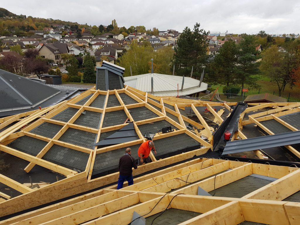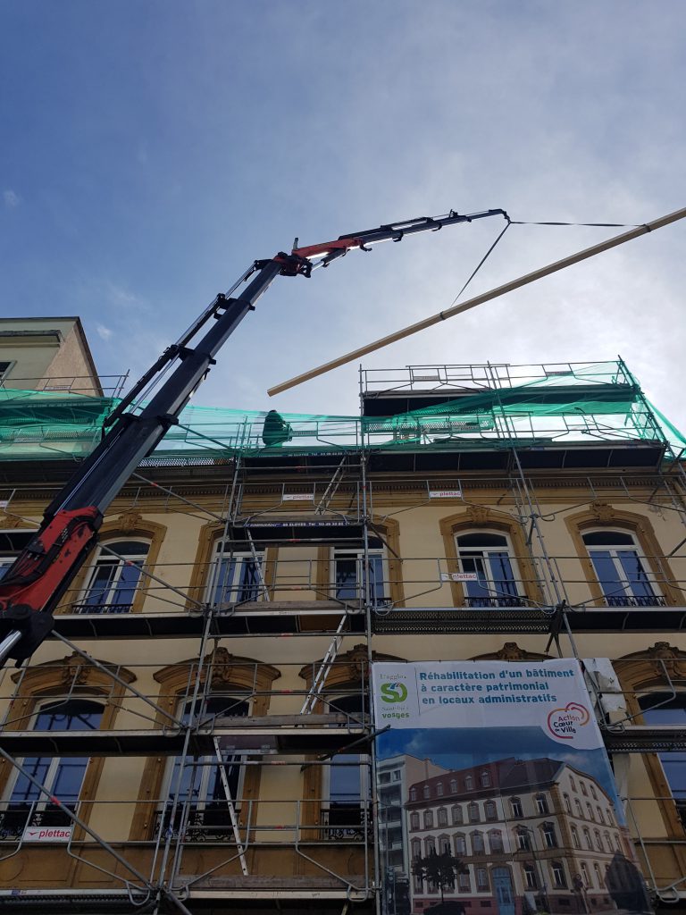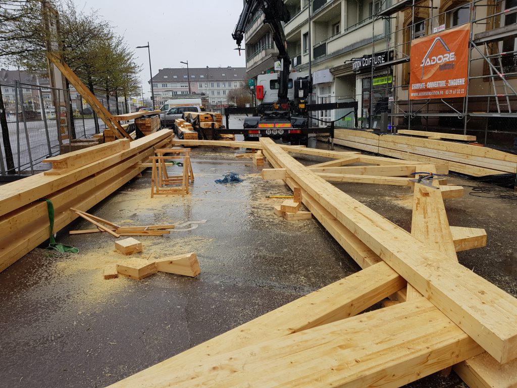 Nous travaillons à partir de bois issu des forêts vosgiennes principalement. Nous taillons et assemblons tous les matériaux dans nos ateliers situés à Evaux et Ménil. Ensuite, ces éléments sont approvisionnés sur votre chantier par nos camions et grutiers selon l’ampleur du travail à réaliser
